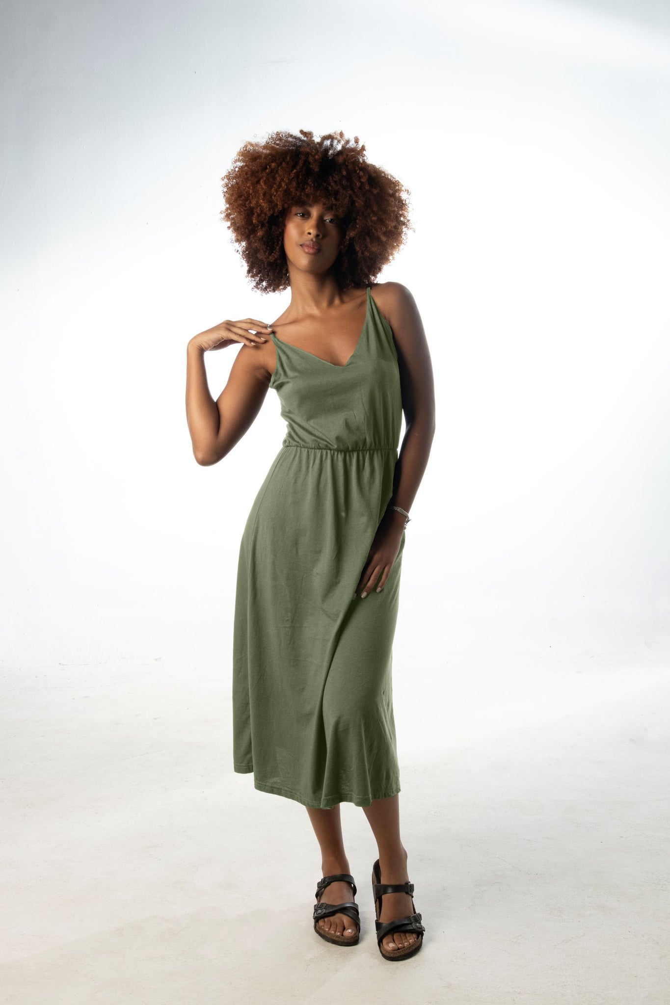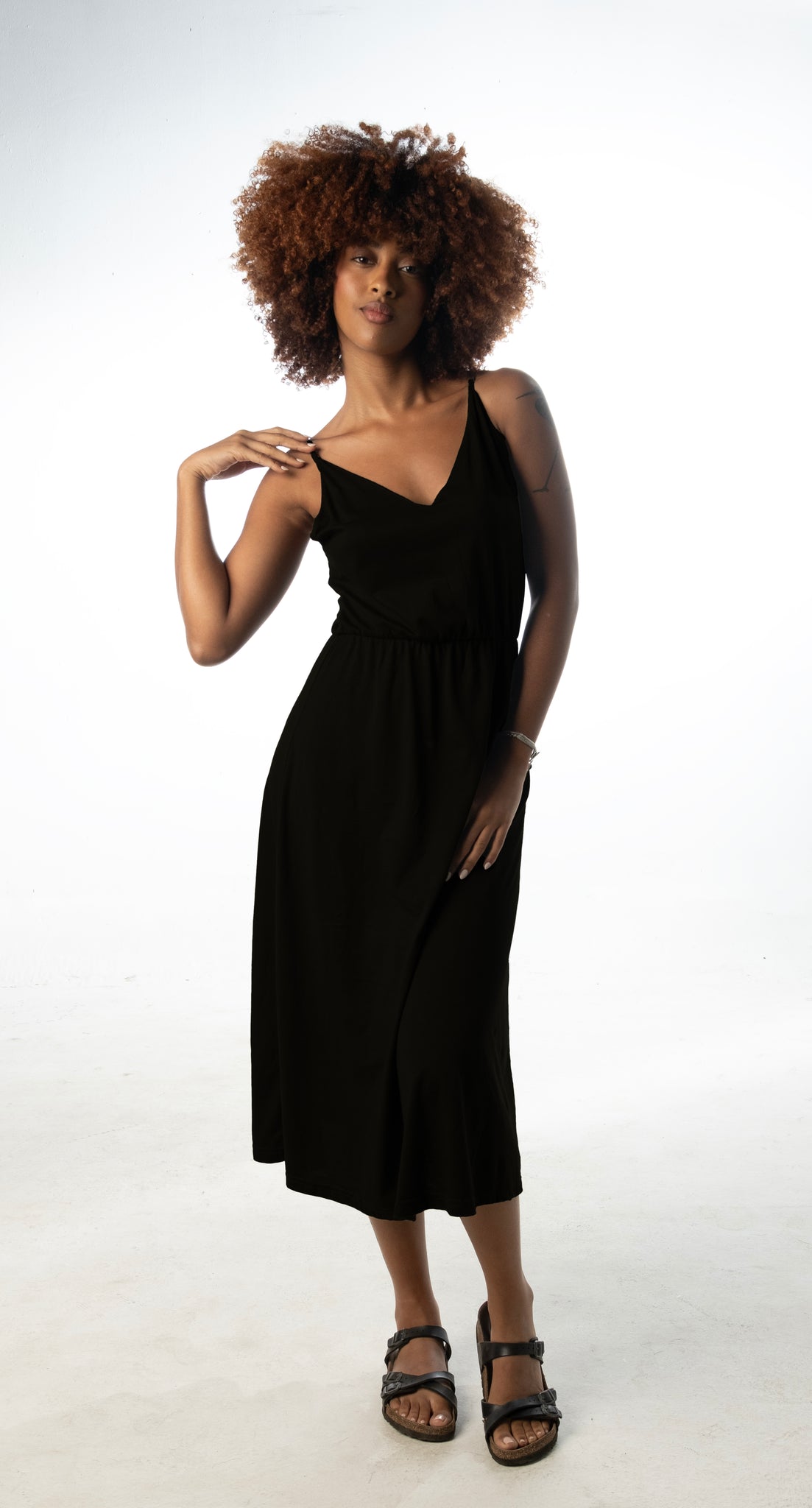Incredibly soft cotton/modal blend midi dress perfect for lounging or dressing up. Machine wash with like colors, tumble dry low. Made in Guatemala.
