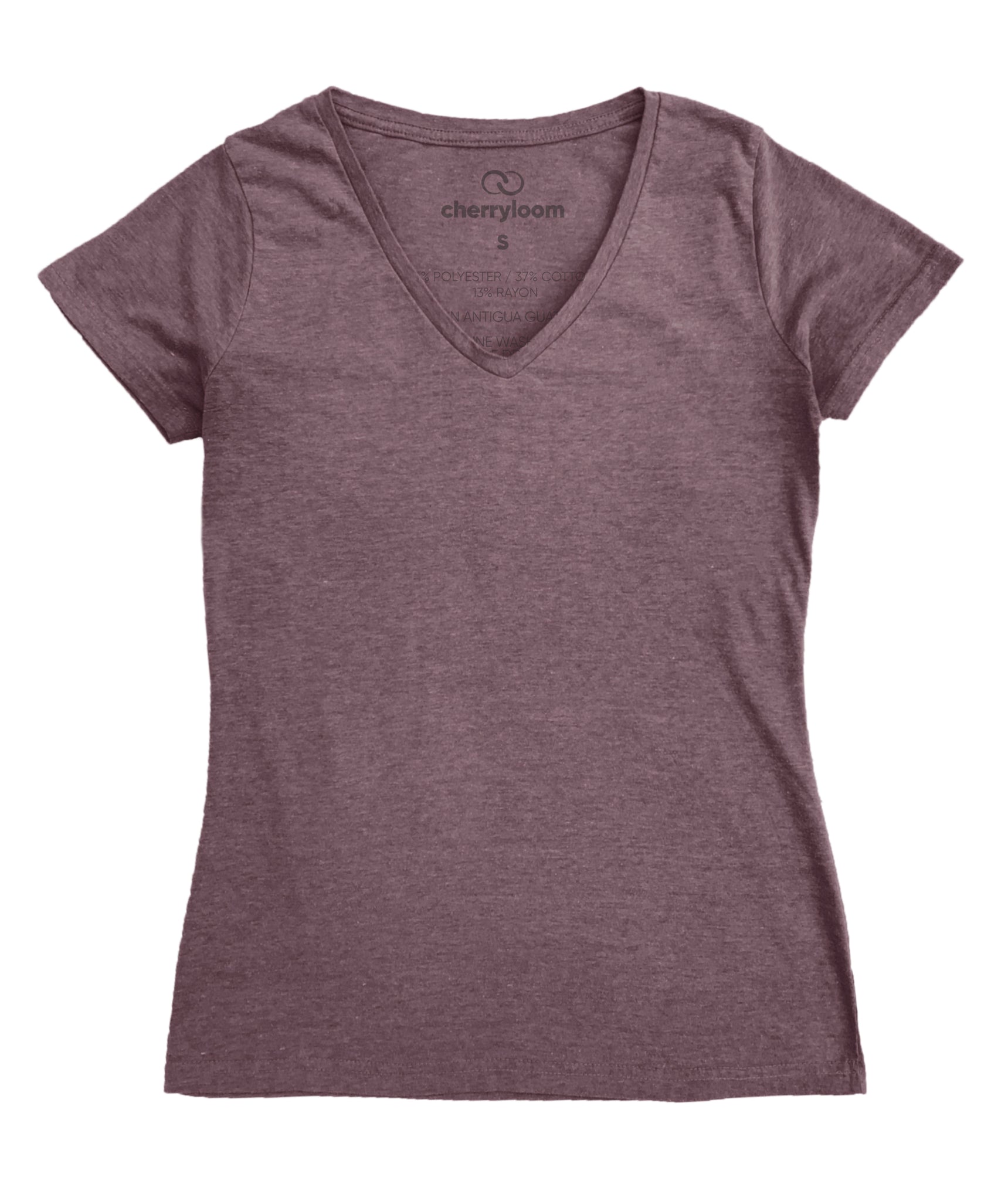 Heathered tri-blend of 50% polyester, 37% cotton, 13% rayon