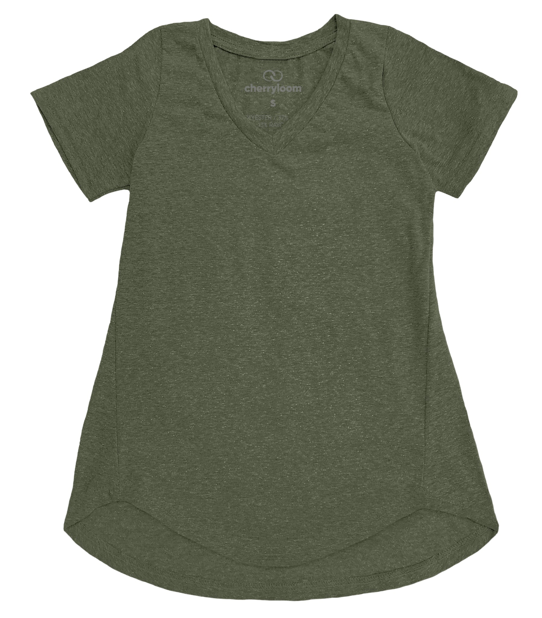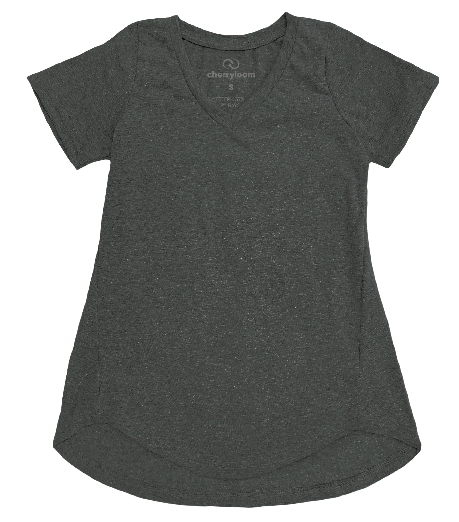 Heathered tri-blend of 50% polyester, 37% cotton, 13% rayon